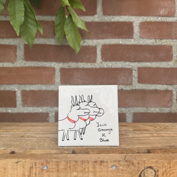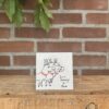 Tegeltje van 10 cm bij 10 cm met variƫrende teksten en afbeeldingen. De tegeltjes zijn handgemaakt.